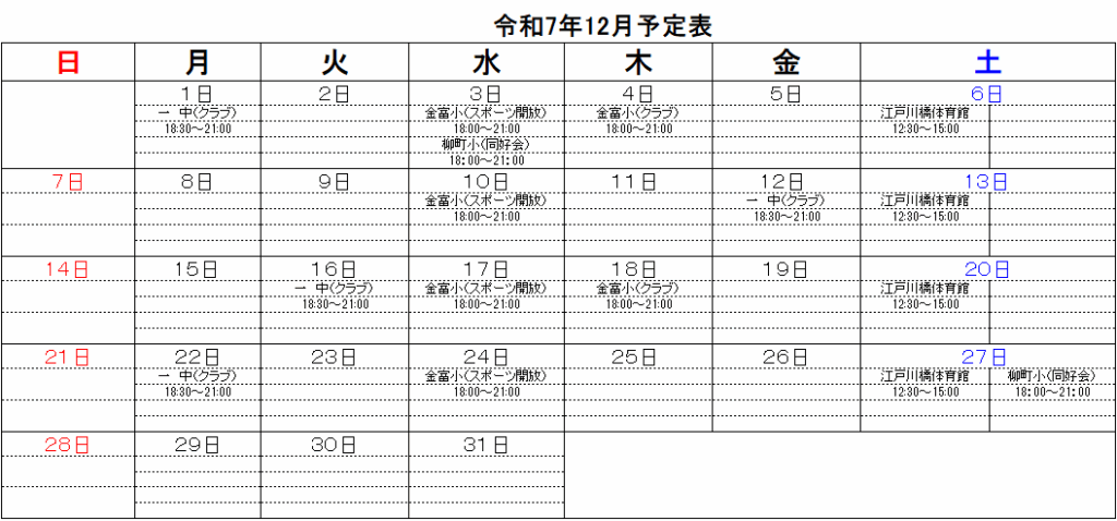 練習スケジュール